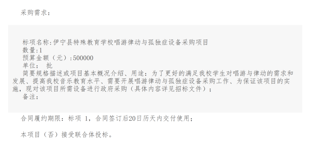 伊寧縣特殊教育學(xué)校唱游律動與孤獨癥設(shè)備采購項目公開招標(biāo)公告