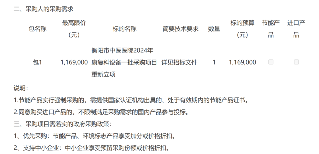 衡陽市中醫(yī)院衡陽市中醫(yī)醫(yī)院2024年康復(fù)科設(shè)備一批采購項目重新立項項目公開招標(biāo)公告
