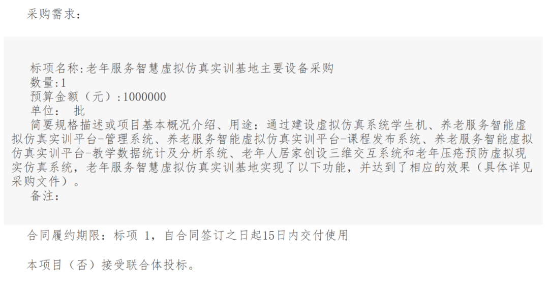 老年服務(wù)智慧虛擬仿真實訓(xùn)基地主要設(shè)備采購公開招標(biāo)公告