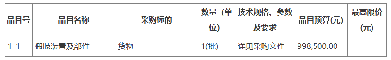 四川省八一康復中心(四川省康復醫(yī)院)假肢裝置及附件招標公告