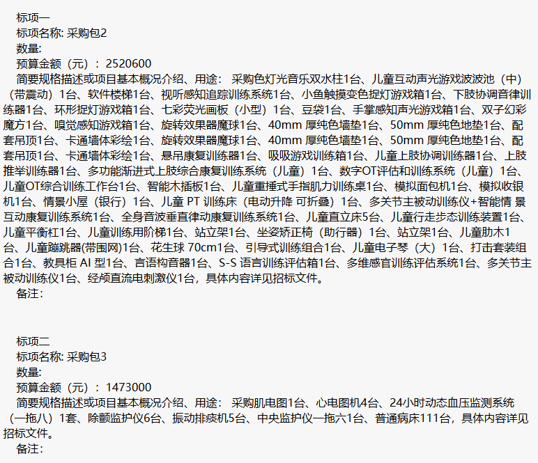 采購需求:上肢智能反饋訓練系統(tǒng)等設備采購,具體內容、主要規(guī)格等詳見招標文件第三章采購需求。