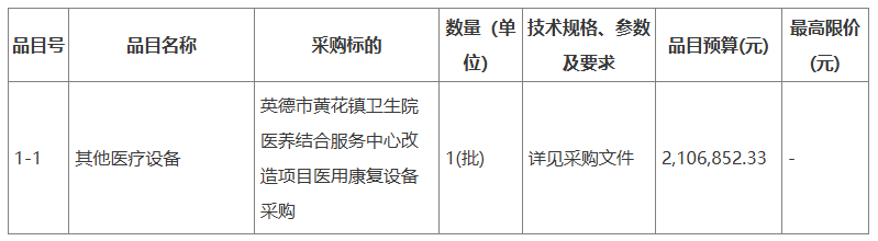 英德市黃花鎮(zhèn)衛(wèi)生院醫(yī)養(yǎng)結合服務中心改造項目醫(yī)用康復設備采購招標公告