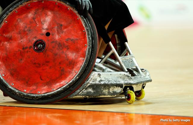 輪椅橄欖球椅可承受沖擊和碰撞。由鋁金屬或鈦制成,根據(jù)運(yùn)動(dòng)員的損傷程度,可以有第五個(gè)或第六個(gè)車輪,以提高穩(wěn)定性和操縱性。對(duì)于進(jìn)攻型座椅,它們的前輪上有鋁金屬的“翅膀”,而對(duì)于防守型座椅,它們的前部有一個(gè)鉤子用來限制對(duì)手。