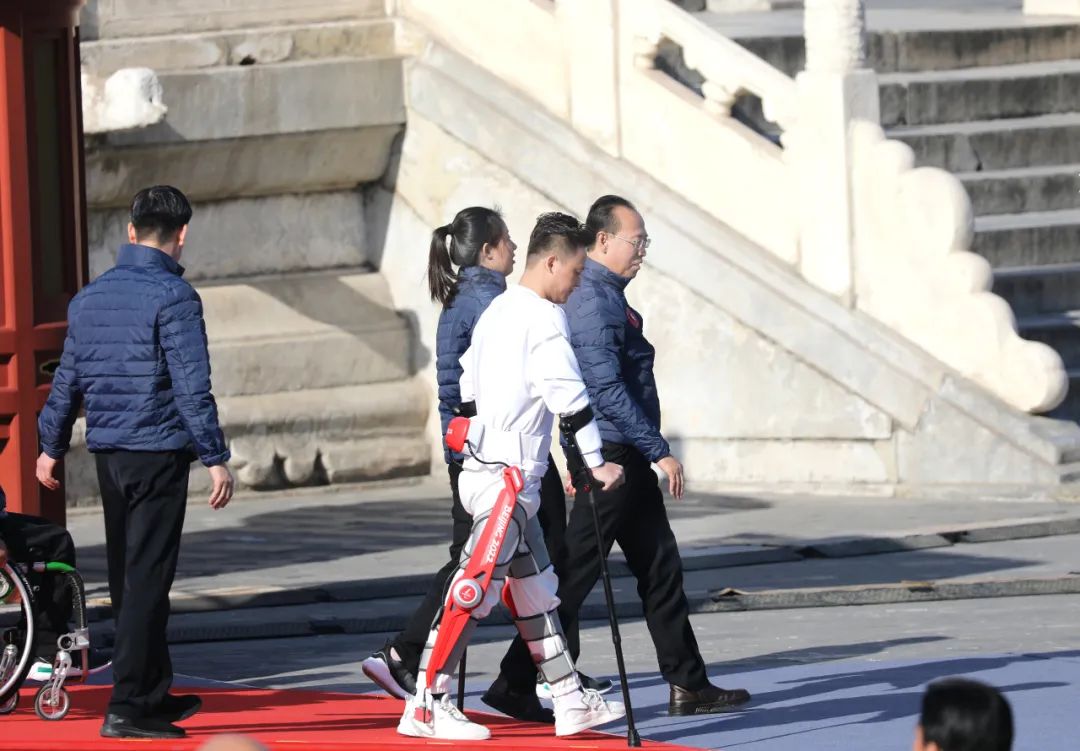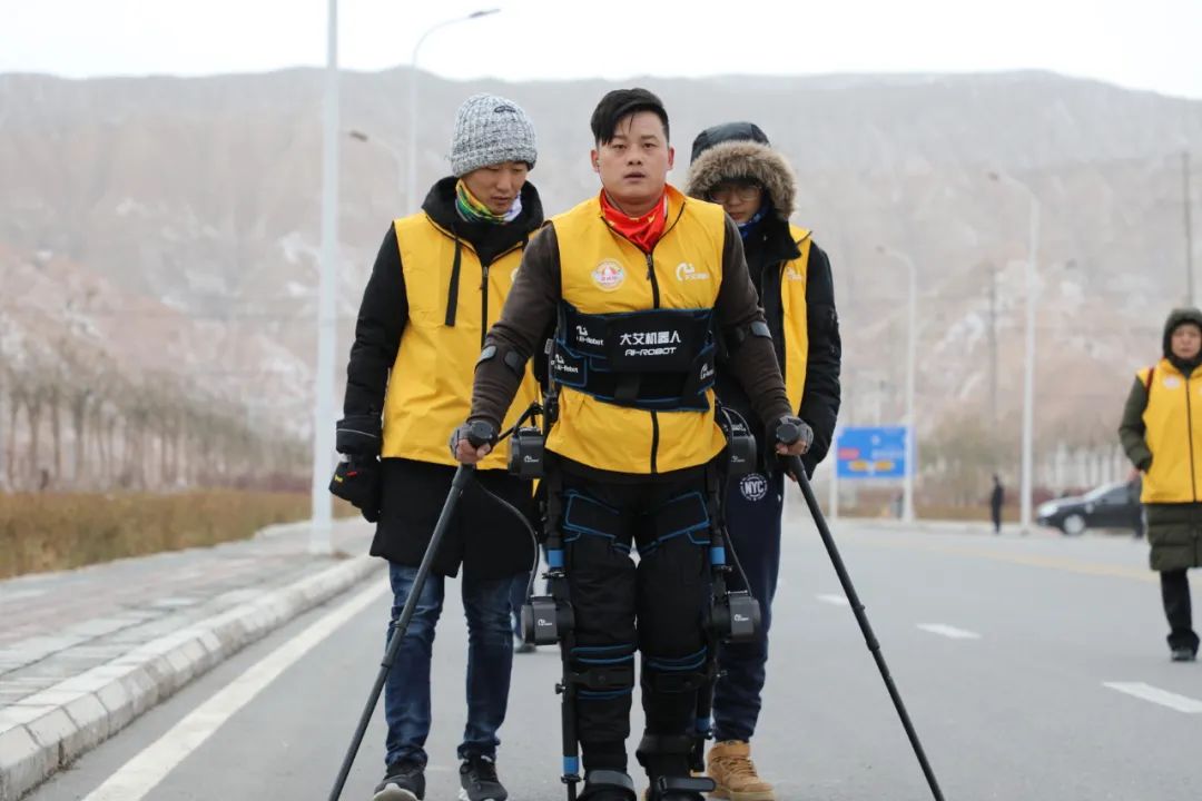 身著這款新一代大艾Ai外骨骼機(jī)器人的,是患有截癱的殘疾人優(yōu)秀代表邵海朋。2017年,邵海朋因高空墜落導(dǎo)致截癱,雙下肢失去行走功能,只能借助輪椅出行。面對(duì)不幸,邵海朋表現(xiàn)出堅(jiān)韌而積極樂(lè)觀的品格,一直堅(jiān)持使用大艾外骨骼機(jī)器人康復(fù)訓(xùn)練。2018年,邵海朋參加“科技助殘”穿越“一帶一路”機(jī)器人行走馬拉松公益挑戰(zhàn)賽,以9天、26小時(shí)的好成績(jī)穿戴外骨骼機(jī)器人走完全程馬拉松,打破了國(guó)外保持的15天走完機(jī)器人行走馬拉松的世界紀(jì)錄,借助科技的力量,實(shí)現(xiàn)自我超越,創(chuàng)造屬于中國(guó)人的奇跡與歷史!期間從新疆克州、西安、北京、南京跨越5000多公里,克服帕米爾高原嚴(yán)寒風(fēng)雪、長(zhǎng)時(shí)間行走身體不適等諸多困難,展現(xiàn)了中國(guó)殘障人士自強(qiáng)不息的奮斗精神。2019年,通過(guò)不斷的康復(fù)努力,邵海朋已經(jīng)能在拐杖輔助下重新行走。