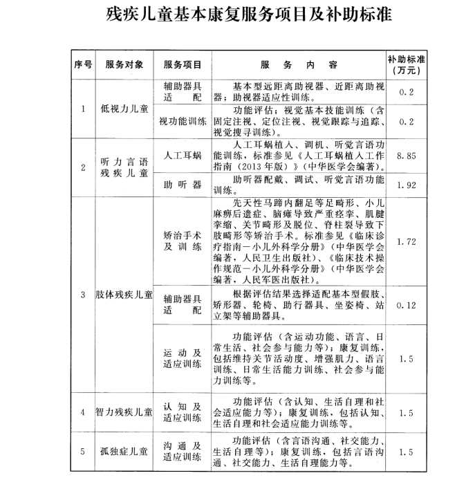【信息來源:2018年10月發(fā)布的《新疆維吾爾自治區(qū)殘疾兒童康復救助實施辦法》】