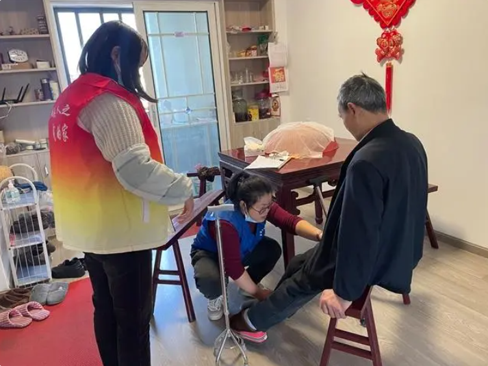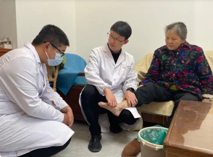 經(jīng)康復(fù)師檢查后發(fā)現(xiàn),她的小腿處有水腫現(xiàn)象,便開始為她進(jìn)行按摩等一系列居家康復(fù)鍛煉,同時叮囑她多坐少臥,嘗試借助拐杖走動,促進(jìn)腿部血液循環(huán)。
