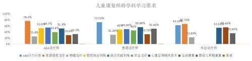 可喜的是,兒童康復(fù)行業(yè)已經(jīng)展現(xiàn)出多學(xué)科精準(zhǔn)康復(fù)的趨勢(shì)。從兒童康復(fù)師學(xué)習(xí)需求的角度來(lái)看,也呈現(xiàn)出多學(xué)科融合發(fā)展的趨勢(shì)。其中,在所調(diào)查的兒童康復(fù)師中,76.3%的ABA治療師希望學(xué)習(xí)言語(yǔ)語(yǔ)言治療技術(shù),占比近8成;72.1%的言語(yǔ)治療師希望學(xué)習(xí)ABA行為分析技術(shù),占比超過(guò)7成;同時(shí),分別有66.7%和62.3%的作業(yè)治療師希望學(xué)習(xí)言語(yǔ)語(yǔ)言治療和ABA行為分析技術(shù),超過(guò)6成。在兒童康復(fù)學(xué)科越發(fā)細(xì)分,越發(fā)專(zhuān)業(yè)的同時(shí),學(xué)科融合的趨勢(shì)也越加明顯。