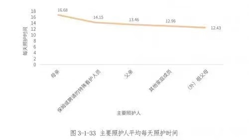 特殊家庭要付出的成本遠(yuǎn)不止金錢(qián)。數(shù)據(jù)顯示,當(dāng)母親作為主要照護(hù)人時(shí),平均每天照護(hù)16.68小時(shí),當(dāng)保姆作為主要照護(hù)人時(shí),平均每天照護(hù)14.15小時(shí),當(dāng)父親作為主要照護(hù)人時(shí),平均每天照護(hù)13.46小時(shí),而當(dāng)其他家庭成員和(外)祖父母作為主要照護(hù)人時(shí),平均每天照護(hù)時(shí)間分別為12.96小時(shí)和12.43小時(shí)。可見(jiàn),母親作為主要照護(hù)人時(shí),每天付出的時(shí)間是最長(zhǎng)的。
