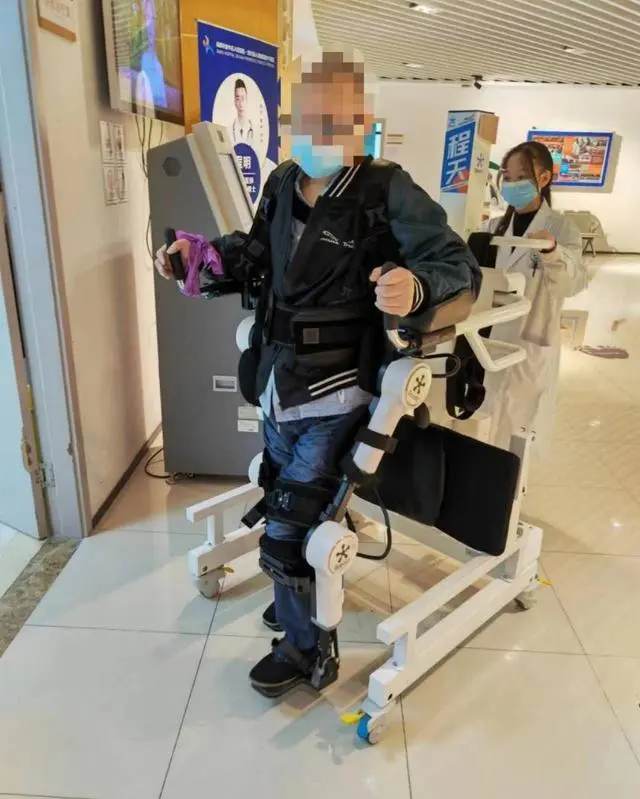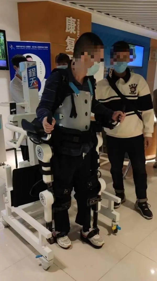 ??????? 就在小康入院半個月后,因為醫(yī)院引進的外骨骼機器人,康復信心逐漸恢復。作為首批使用機器人的康復患者,小康每天會在它的協(xié)助下完成量身定制的步態(tài)行走訓練,經過一個多月的堅持,小康實現(xiàn)了拿著助行架獨立行走。