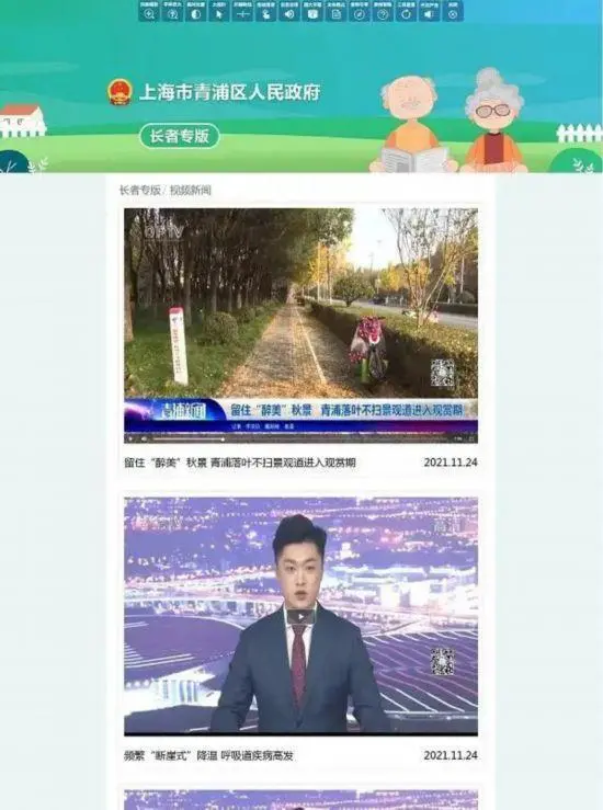 對(duì)“上海青浦”政府網(wǎng)站各層頁(yè)面進(jìn)行適配改造,為老年人、殘疾人提供更簡(jiǎn)潔的頁(yè)面、更大的字體、更便捷的操作方式。同時(shí),還提供語(yǔ)音播放功能,目前支持普通話(huà)版本和滬語(yǔ)版本。