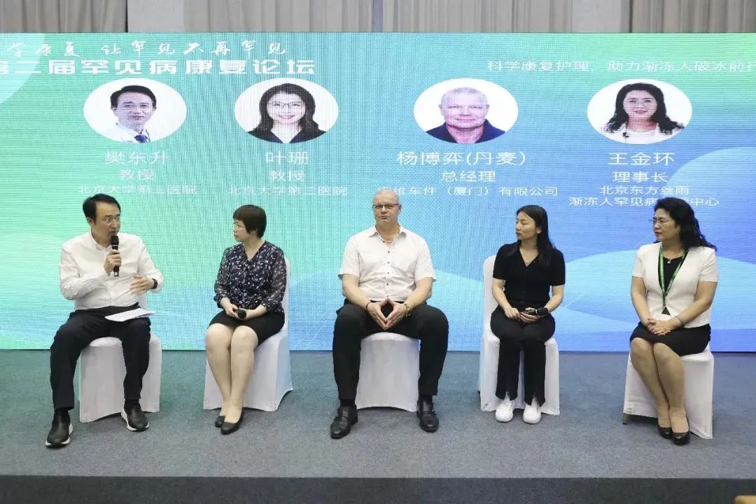 本次論壇分四個板塊,分別由北京大學(xué)第三醫(yī)院葉珊教授、安維車件(廈門)有限公司楊博弈總經(jīng)理、北京東方絲雨漸凍人罕見病關(guān)愛中心王金環(huán)理事長圍繞“科學(xué)康復(fù)護(hù)理,助力漸凍人破冰前行”;上海德達(dá)醫(yī)院簡鍇陶教授、中國醫(yī)學(xué)科學(xué)院北京協(xié)和醫(yī)院戴榮平教授、北京康心馬凡綜合征關(guān)愛中心常繼國理事長圍繞“康復(fù)前置,讓馬凡不再麻煩”;北京大學(xué)第三醫(yī)院劉小璇教授、中日友好醫(yī)院段曉慧教授、千里行CMT互助之家羅玉萍組織者圍繞“醫(yī)康融合,讓CMT獲得新生”;中國康復(fù)研究中心北京博愛醫(yī)院劉松懷教授、太陽語心理專業(yè)督導(dǎo)韓笑專家、太陽語罕見病心理關(guān)愛中心魏瑞紅理事長圍繞“心理康復(fù),撫慰罕見”等四個方面,進(jìn)行了充分的論述和研討。