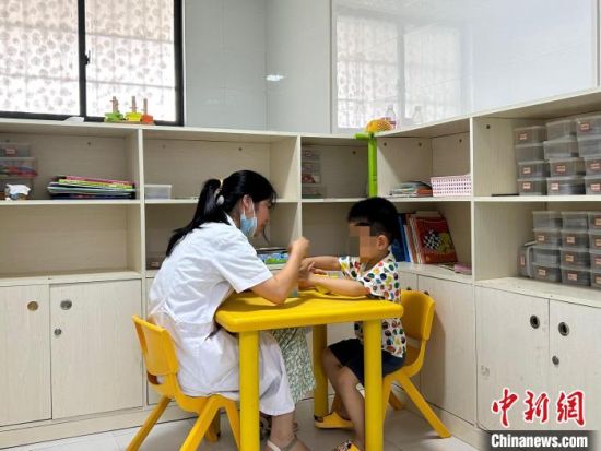 圖為康復(fù)老師與孩子面對(duì)面教學(xué)、互動(dòng)?!≈飕?攝