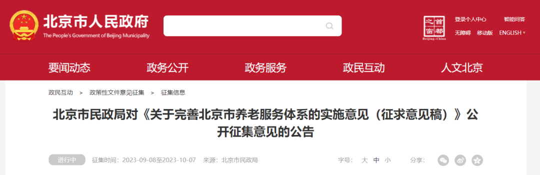 北京市民政局對(duì)《關(guān)于完善北京市養(yǎng)老服務(wù)體系的實(shí)施意見(jiàn)(征求意見(jiàn)稿)》公開(kāi)征集意見(jiàn)的公告