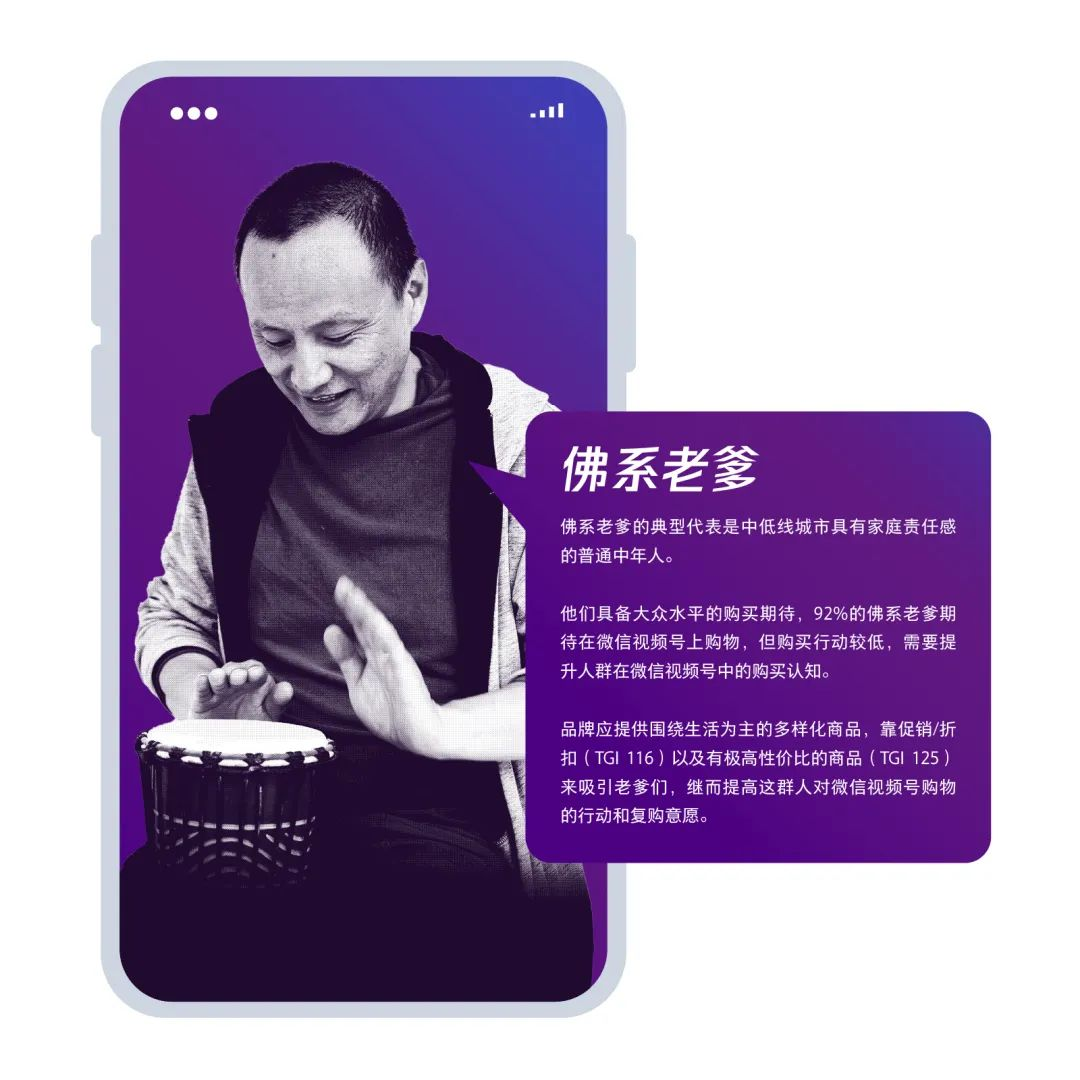 近日,凱度發(fā)布《2024微信視頻號超級玩家營銷價值研究報告》。其中,成長型平臺用戶包含“佛系老爹”等三大類。佛系老爹作為中低線城市具有家庭責(zé)任感的普通中年人,92%的佛系老爹期待在微信視頻號上購物,但購買行動較低。品牌應(yīng)提供圍繞生活為主的多樣化商品,靠促銷/折扣以及有極高性價比的商品來吸引“老爹們”,繼而提高這類人群對微信視頻號購物的行動和復(fù)購意愿。