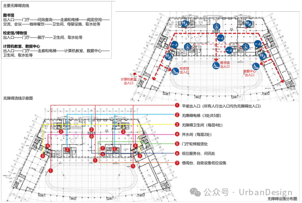 圖9 “創(chuàng)新核”1#樓無障礙流線及設(shè)施配置圖
