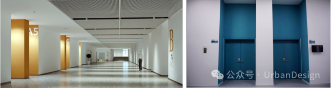 室內(nèi)通過色彩變化進(jìn)行功能分區(qū),標(biāo)識采用大字體和高對比度形式(圖 14)。