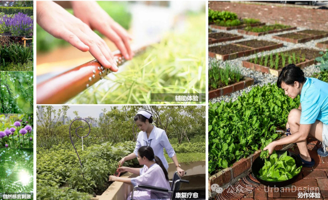 康復(fù)大學(xué)校園包容性設(shè)計中注重人的心理感受,充分發(fā)揮康復(fù)學(xué)科的特點,利用康復(fù)醫(yī)學(xué)、康復(fù)景觀學(xué)等相關(guān)理論,借助場地、空間與陽光、空氣、植物、土地的相互作用,采用園藝療法等療愈手段,利用植物栽培與園藝操作活動幫助有需要人士從其社會、教育、心理以及身體諸方面進(jìn)行調(diào)整更新(圖 20)。