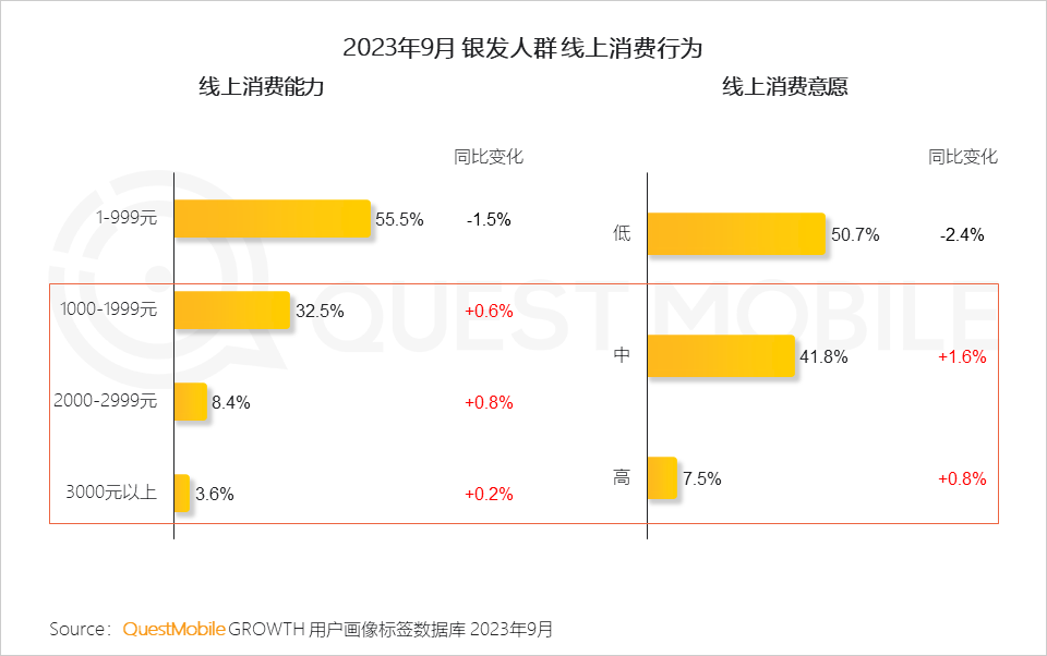 3、銀發(fā)經(jīng)濟(jì)市場潛力凸顯,較去年相比,源于向高線級城市遷移,銀發(fā)群體表現(xiàn)出的線上消費能力、消費意愿均有明顯提升。