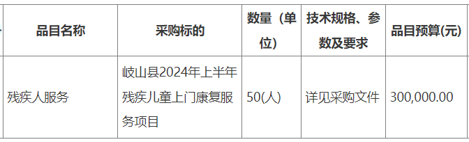 岐山縣2024年上半年殘疾兒童上門康復(fù)服務(wù)項(xiàng)目競爭性磋商公告