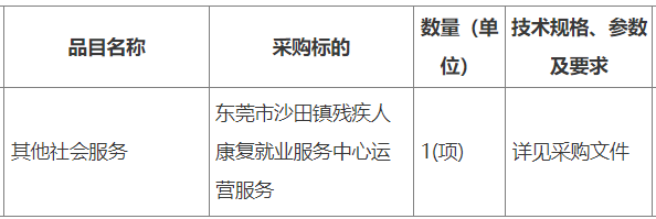 東莞市沙田鎮(zhèn)殘疾人康復(fù)就業(yè)服務(wù)中心運(yùn)營服務(wù)招標(biāo)公告