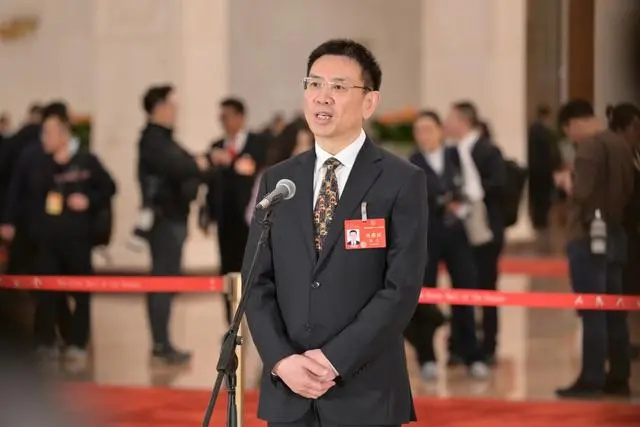 全國(guó)人大代表、武漢高德紅外股份有限公司董事長(zhǎng)黃立在代表通道接受采訪。