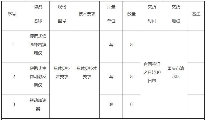 康復設備器材采購項目(重新招標)招標公告