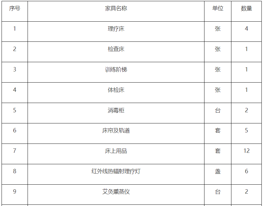 中醫(yī)康復科設備采購項目競爭性談判公告