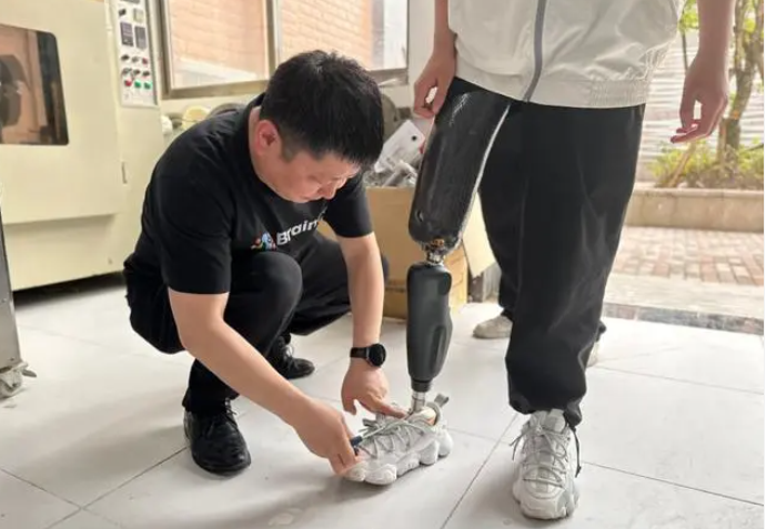 近日,在貴州省康復(fù)醫(yī)院“科技改變生活·輔具支撐夢想——優(yōu)秀殘疾人代表智能假肢裝配公益活動”現(xiàn)場,貴州省殘疾人游泳隊隊員陳潔在工作人員的幫助下穿上了新適配的智能仿生假肢,開始了適應(yīng)訓(xùn)練。據(jù)了解,本次公益活動是該醫(yī)院2023年度假肢矯形器裝配康復(fù)救助項目的一部分,計劃讓14位優(yōu)秀殘疾人通過適配智能仿生假肢,獲得更為強(qiáng)大的生活能力與職業(yè)潛能。