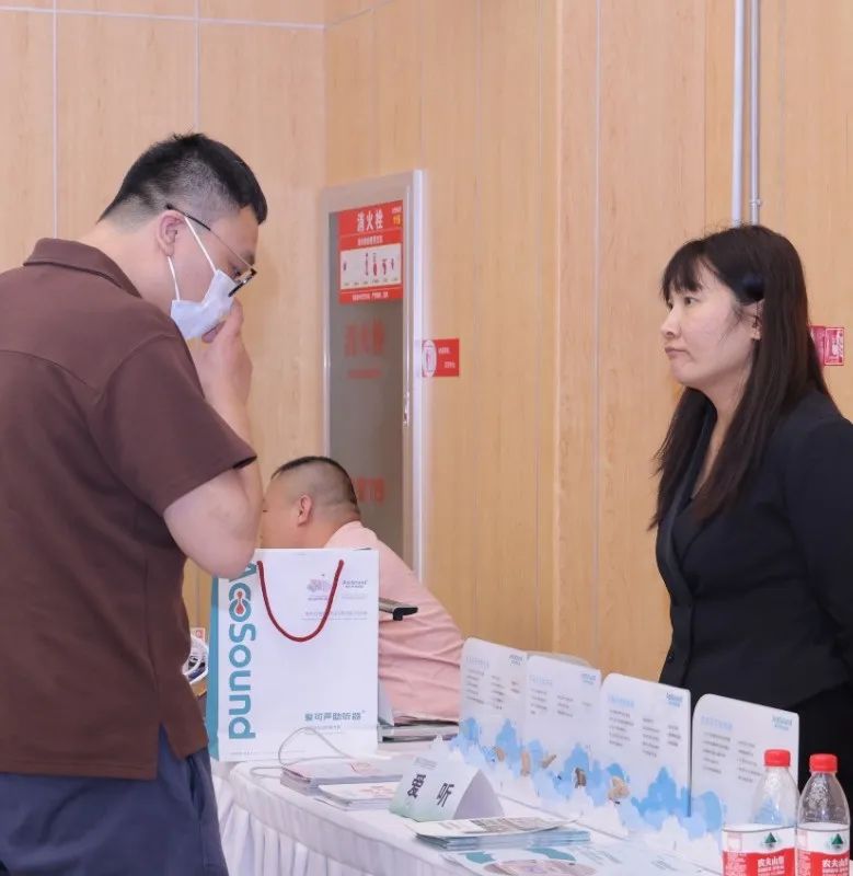交流會現(xiàn)場設(shè)置了輔具展示區(qū),在專家和嘉賓的交流分享環(huán)節(jié)結(jié)束后,參會企業(yè)代表們前往展示區(qū)自由交流對接。愛聽、中車、聚茂源、元芳博愛、金宇瑞欣等企業(yè)帶來了助行移動輔具,視障輔具,助聽設(shè)備,助浴設(shè)備,適老化改造方案,康養(yǎng)輔具等一系列產(chǎn)品,吸引了眾多代表駐足參觀并進(jìn)行體驗互動。