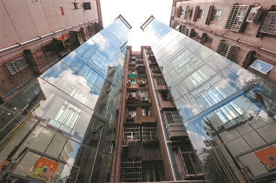 廣州黃花崗街道加裝電梯的樓宇。圖源:廣州日報