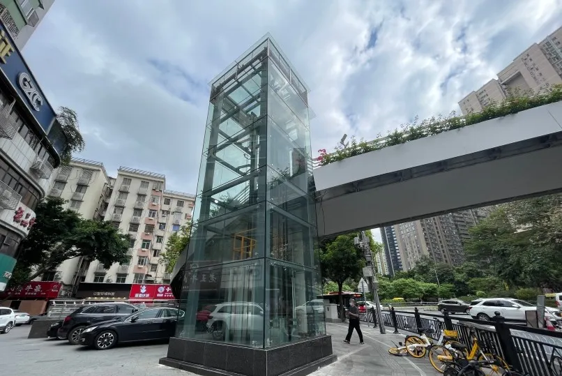 人行天橋配置無障礙電梯。圖源:廣州日報