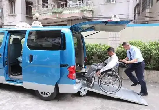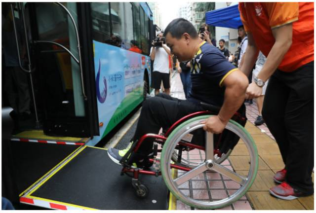 針對障礙群體的個人出行,廣州公交和滴滴出行合作,投入無障礙的士,方便障礙人士出行。這些車輛尾部有輕型斜坡輔助裝置,車內配置了輪椅專用的安全帶,可接受電話預約。