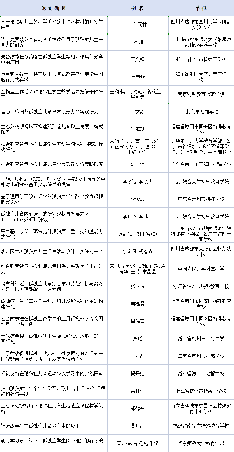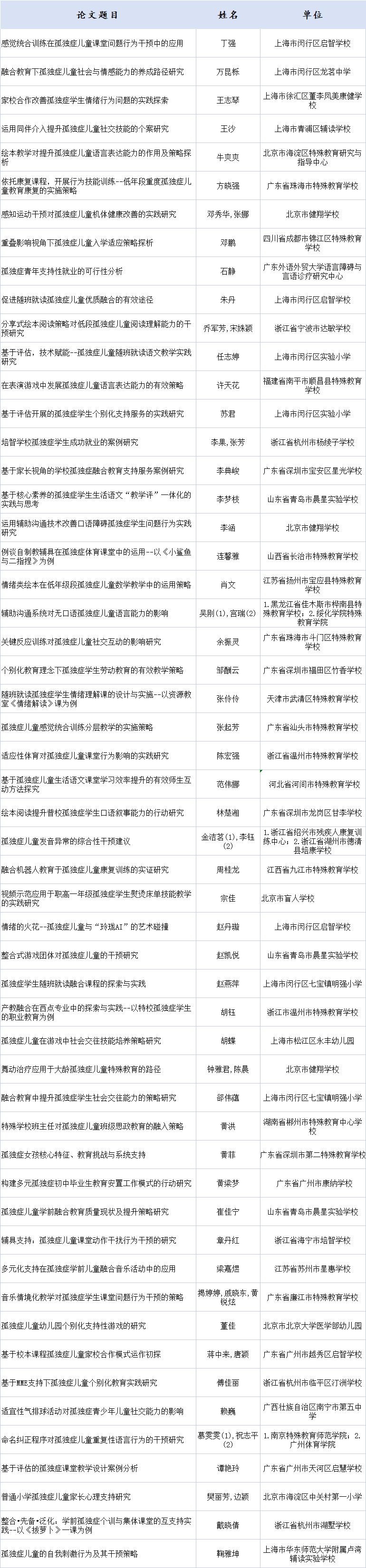 為貫徹落實黨的二十屆三中全會和全國教育大會精神,深入實施《“十四五”特殊教育發(fā)展提升行動計劃》《孤獨癥兒童關(guān)愛促進行動實施方案(2024-2028年)》,大力開展孤獨癥兒童教育研究,積極推動特殊教育教師專業(yè)能力提升,融合教育高質(zhì)量發(fā)展交流會暨第一屆孤獨癥兒童教育教學優(yōu)秀論文與課例征集結(jié)果發(fā)布儀式11月28日在北京國家會議中心舉行。