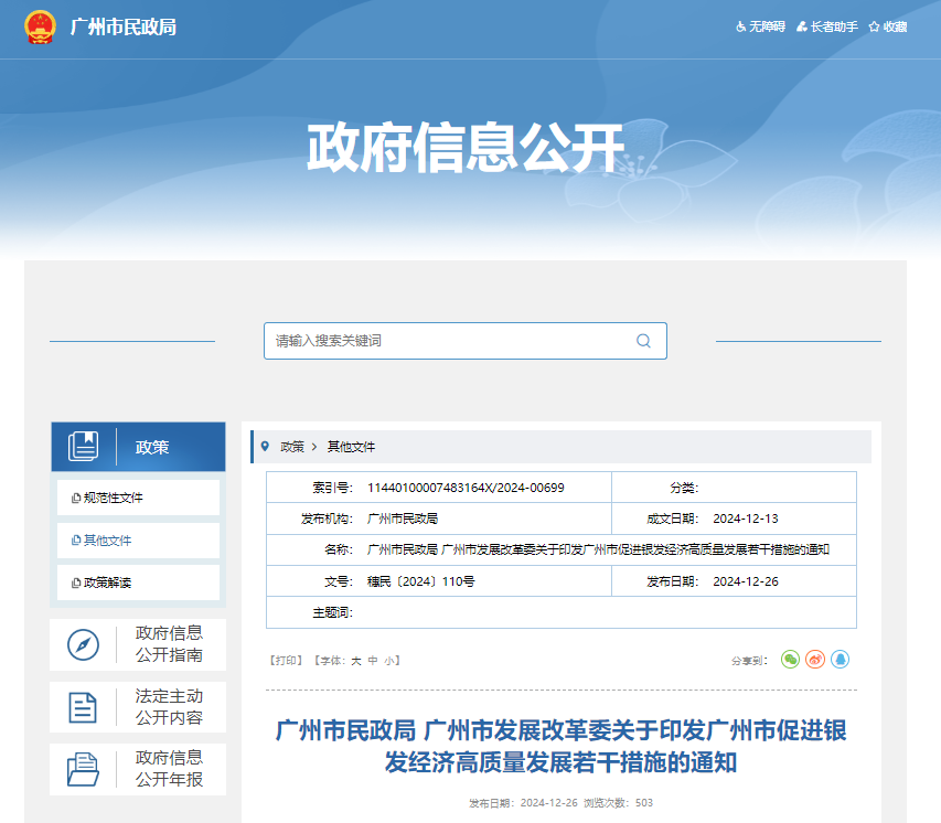 近日,經(jīng)廣州市人民政府同意,《廣州市民政局 廣州市發(fā)展改革委關(guān)于印發(fā)廣州市促進(jìn)銀發(fā)經(jīng)濟(jì)高質(zhì)量發(fā)展若干措施的通知》(穗民〔2024〕110號(hào),下稱(chēng)《措施》)正式出臺(tái)?!洞胧穼?duì)標(biāo)對(duì)表《國(guó)務(wù)院辦公廳關(guān)于發(fā)展銀發(fā)經(jīng)濟(jì)增進(jìn)老年人福祉的意見(jiàn)》26項(xiàng)舉措和7大潛力產(chǎn)業(yè),結(jié)合我市重點(diǎn)產(chǎn)業(yè)審視、業(yè)務(wù)圖譜初步成果和老年人需求深化調(diào)研成果,聚焦老年人高頻需求和我市優(yōu)勢(shì)產(chǎn)業(yè),從民生事業(yè)、重點(diǎn)賽道和支撐保障三個(gè)方面提出10條操作性強(qiáng)的措施。