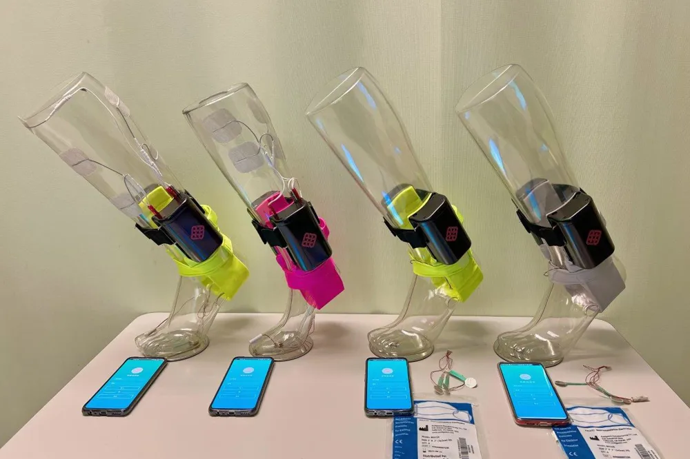 移動式踝足外神經(jīng)肌肉骨骼 (ENMS) 是同類產(chǎn)品中首創(chuàng)的,它將外骨骼、軟氣動肌肉、神經(jīng)肌肉電刺激 (NMES) 和振動觸覺感官反饋的多模式優(yōu)勢集成到一個由 9V 充電電池供電的輕便可穿戴系統(tǒng)中。這種獨特的組合不僅可以有效矯正中風后足下垂和足內(nèi)翻,而且整個系統(tǒng)也便于非專業(yè)人士在自助遠程康復中使用。