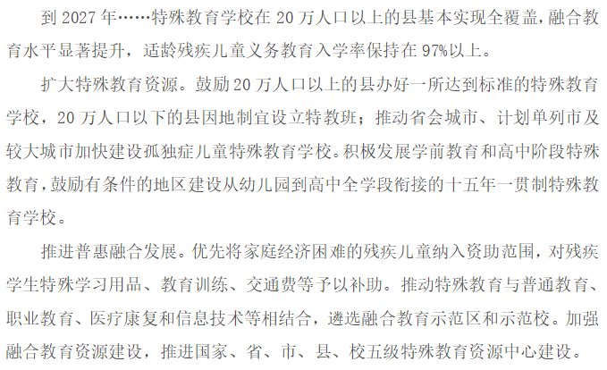 《意見》中提到諸多推動(dòng)基礎(chǔ)教育發(fā)展的計(jì)劃,其中與特殊教育相關(guān)的主要舉措如下: