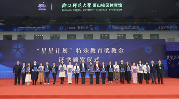 在上文提到的2024年12月11日于浙江師范大學(xué)舉辦的國(guó)家孤獨(dú)癥兒童特殊教育資源中心建設(shè)啟動(dòng)會(huì)上,“星星計(jì)劃”2024年度特殊教育獎(jiǎng)教金證書頒發(fā)儀式也共同舉行。