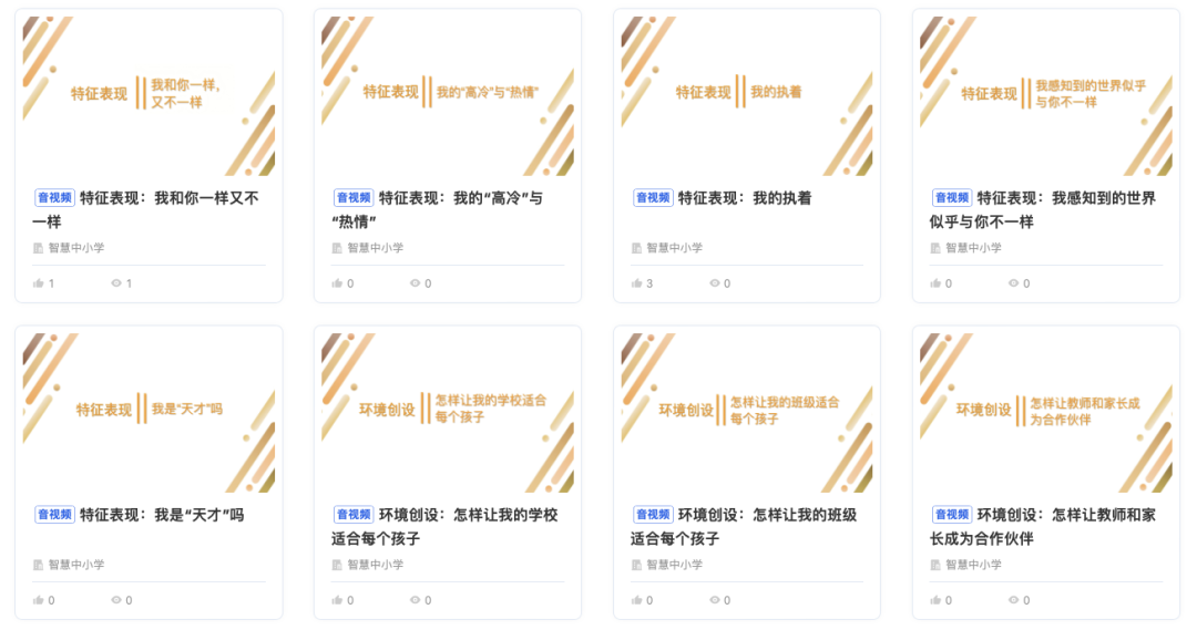 我們?cè)?a data-linktype="2" imgdata="null" imgurl="" linktype="text" tab="innerlink" target="_blank" textvalue="《特殊教育專業(yè)資源“國(guó)家隊(duì)”正式登場(chǎng)!》">《特殊教育專業(yè)資源“國(guó)家隊(duì)”正式登場(chǎng)!》(點(diǎn)擊查看原文)中提到,該板塊內(nèi)上線了大量關(guān)于孤獨(dú)癥隨班就讀策略的視頻課程(由中央電化教育館制作),供教師們參考。