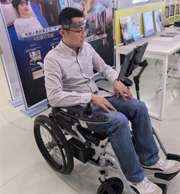 由華南腦控(廣東)智能科技有限公司研發(fā)的腦機(jī)AI電動(dòng)輪椅則可通過(guò)佩戴腦機(jī)AI頭環(huán),采集用戶腦電信號(hào)等多模態(tài)信號(hào),從而精準(zhǔn)識(shí)別用戶意圖,以實(shí)現(xiàn)對(duì)輪椅的控制。