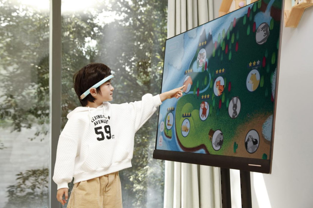 強(qiáng)腦科技研發(fā)的StarKids開(kāi)星果腦機(jī)接口社交溝通訓(xùn)練系統(tǒng),其聚焦社交和語(yǔ)言障礙,通過(guò)捕捉兒童大腦中與社交相關(guān)的腦電信號(hào),并結(jié)合人工智能算法,進(jìn)行實(shí)時(shí)閉環(huán)反饋訓(xùn)練,以促進(jìn)患兒大腦神經(jīng)可塑性,由此提升兒童的認(rèn)知社交能力與邏輯思維能力。