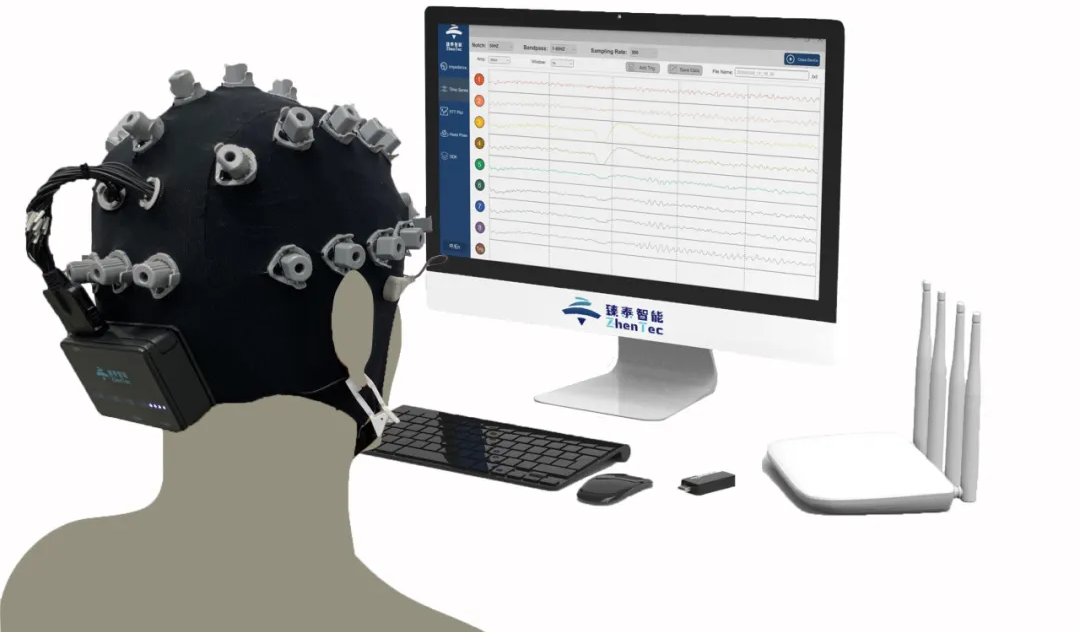 西安臻泰智能科技有限公司孵化的產(chǎn)品——無(wú)線多通道腦電采集分析系統(tǒng)是國(guó)內(nèi)首款無(wú)線全兼容腦電采集分析系統(tǒng)。其通過(guò)腦電電極采集人體uV級(jí)腦電信號(hào),進(jìn)行放大器處理、數(shù)模轉(zhuǎn)換后,通過(guò)5GHz的WIFI通信發(fā)送到電腦端,并以此控制外部機(jī)器人,形成腦-機(jī)接口系統(tǒng)。